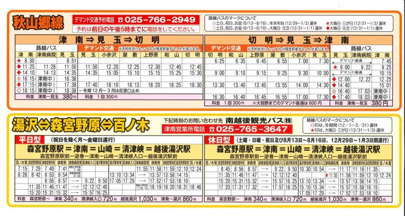 ※秋山郷方面へは見玉下車、見玉~秋山郷はデマンド交通(事前予約制)をご利用下さい。