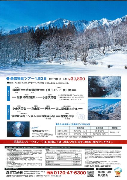 『秘境秋山郷豪雪撮影ツアー』がリリースされました。