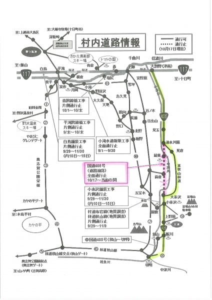 【お知らせ】国道405号 通行止めについて(秋山郷方面)